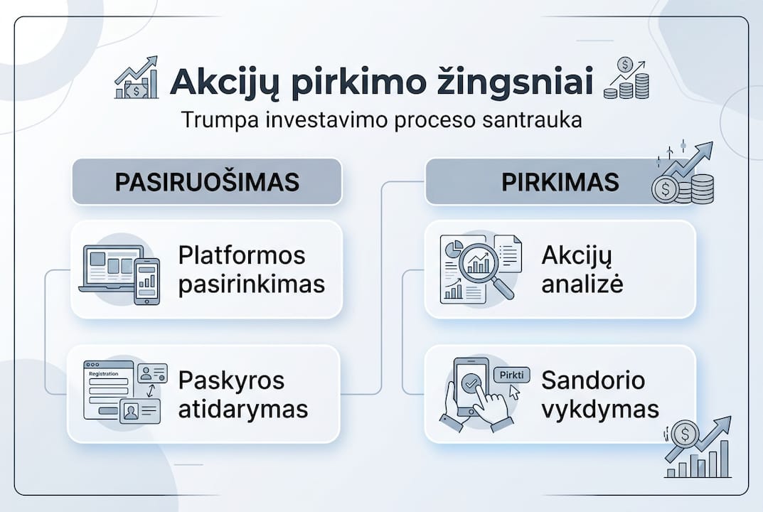 - Akcijų pirkimo procesas žingsnis po žingsnio