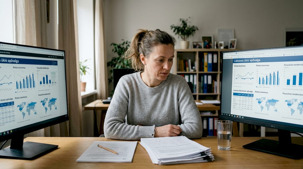 Lietuva 2026 metais demonstruoja stebėtiną ekonominį atsparumą: BVP augimas prognozuojamas 3,4%, tai yra 2,5 karto greičiau nei ES vidurkis (1,4%). Tai vyksta tuo metu, kai geopolitinės įtampos Rytų Europoje nepraranda intensyvumo, valiutų rinkos svyruoja, o ekspertai perspėja apie stagfliacijos ir nemokumo rizikas. Kaip investuotojas gali suprasti šiuos prieštaravimus ir paversti juos strateginiu pranašumu? Šiame straipsnyje išnagrinėsime, kaip geopolitika formuoja finansų rinkas, kokios valiutų tendencijos dominuoja ir kokias praktines išvadas galite pritaikyti savo portfeliui.