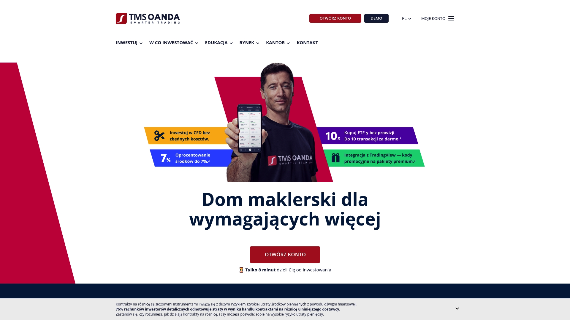 TMS Europe yra reguliuojamas KNF brokeris, siūlantis prekybą forex, CFD, akcijomis, indeksais, žaliavomis, ETF ir kriptovaliutomis. Platformoje rasite MetaTrader 5, TradingView integracijas ir gausią mokomąją medžiagą keliomis kalbomis.